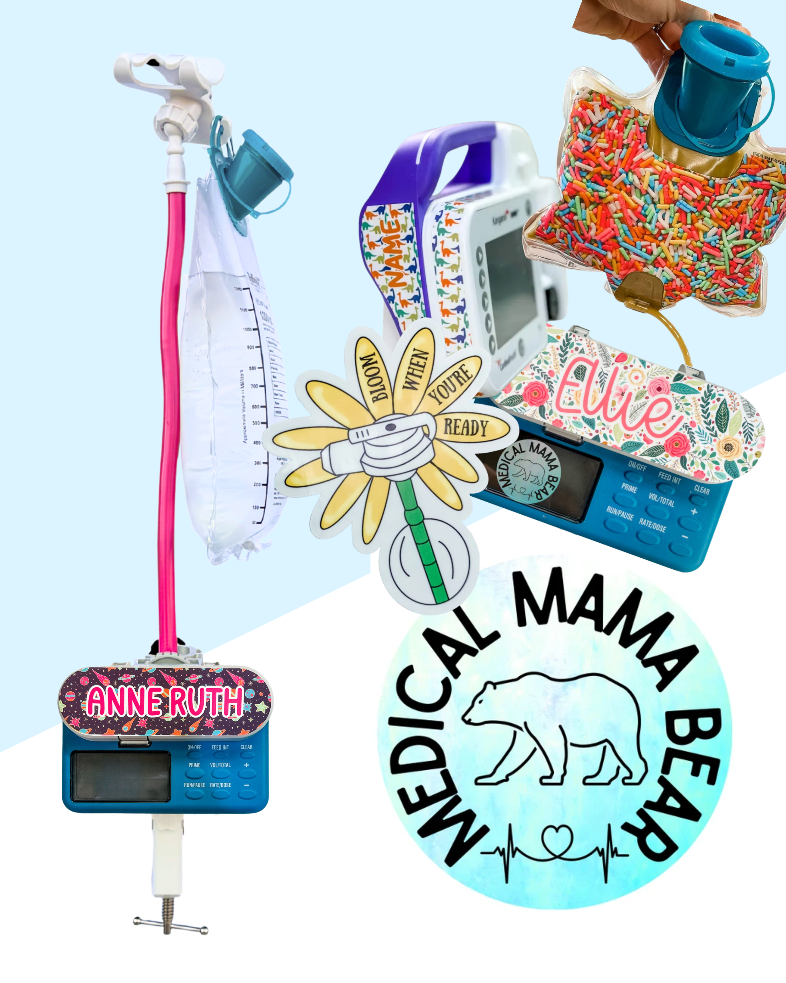 During our time in the NICU, we had a primary nurse who always tried to bring joy and fun to our very serious situation. When Medical Mama Bear began in 2019, I made funny stickers with relatable sayings just for other medical parents because our nurse showed me a way to make the worst scenario a little bit better through humor. Some of those original novelty stickers are still available today although I primarily create feeding pump stickers, which also bring so much joy!