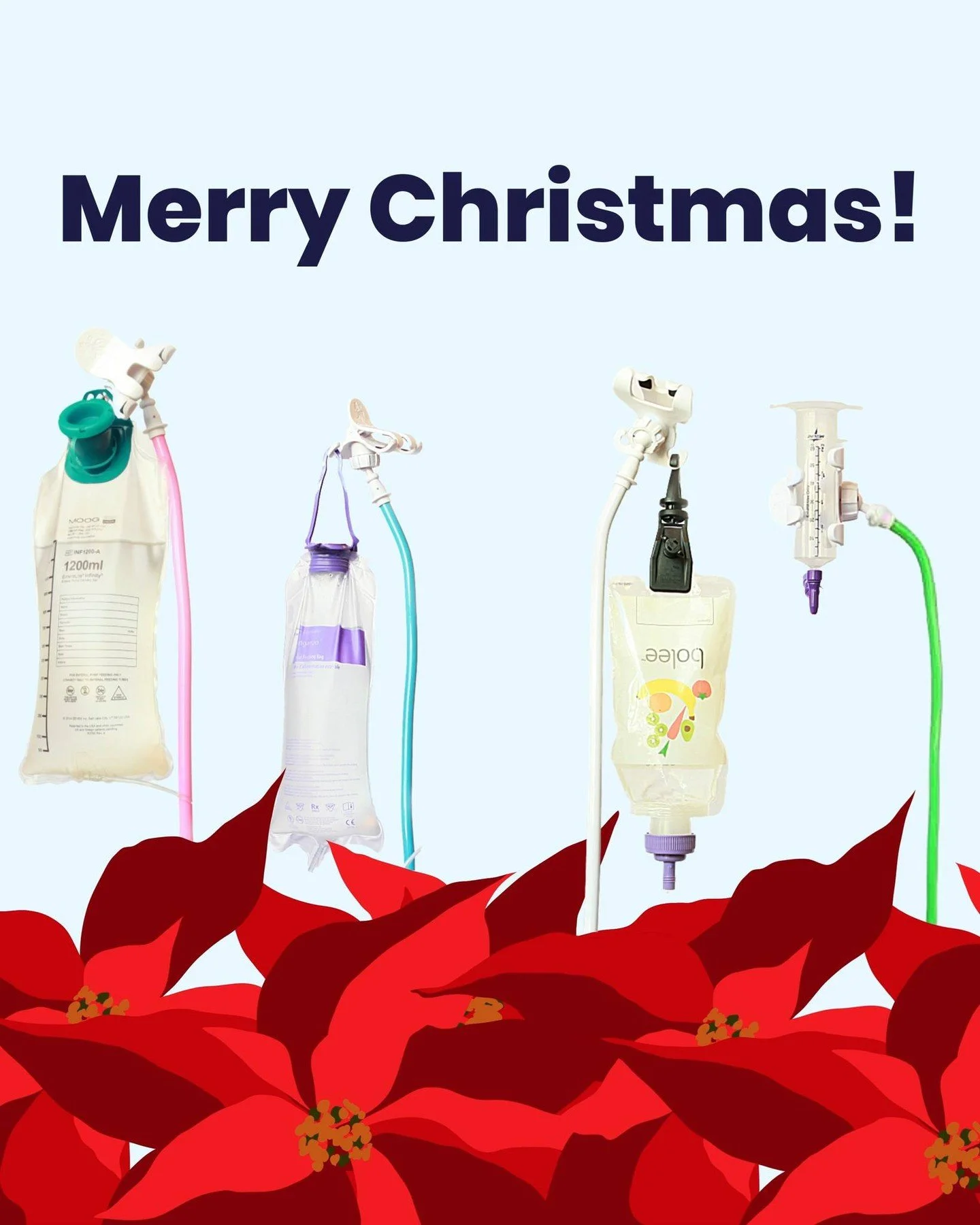 Feeding tube, bolus syringe, pump, feedbag and pump IV pole clamp are not included